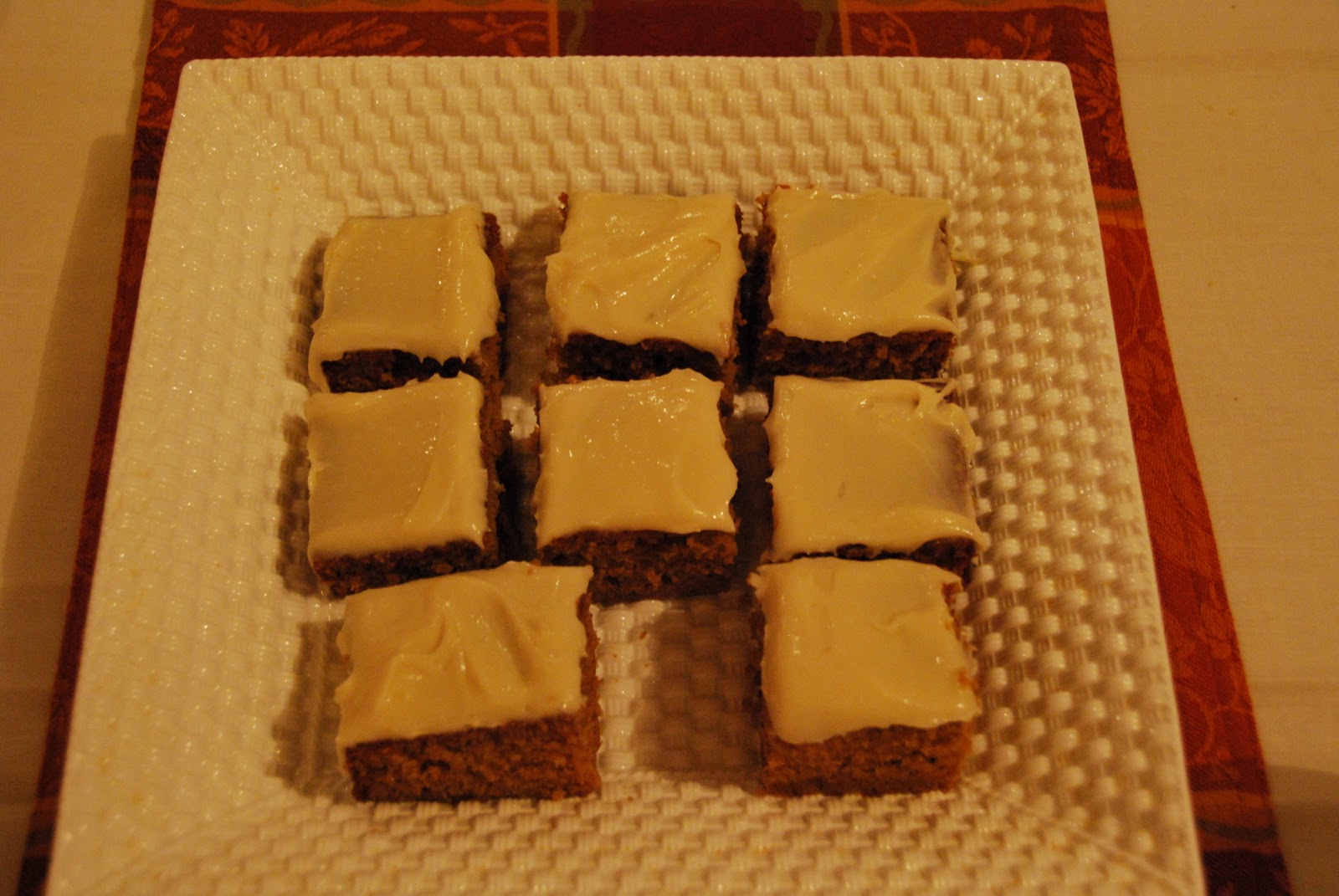 In any case, I was complaining to my friend who offered up this pumpkin cake recipe which could not possibly be easier to make. It requires one mixing bowl, a 1 cup and a 1 tsp measure, and a mixing instrument. You seriously can’t mess it up, and, while not the most healthy recipe out there, it is simple and tasty. In the future I’d like to try lightening it up with less sugar, some whole wheat flour, and possibly some applesauce in place of some of the oil – I will let you know how it goes when I do! But for Thanksgiving, of course, I decided to make it even more decadent by adding some cream cheese frosting, which was absolutely delicious, but not at all necessary to make the cake enjoyable. As a side note, this frosting is incredibly easy, too. I will have more info on frosting in a future post (my little munchkin is turning 2 and it’s cupcake time!), but in the mean time, please know that it is not difficult to make frosting that is tastier and way more wholesome than anything you can buy in a tub 🙂