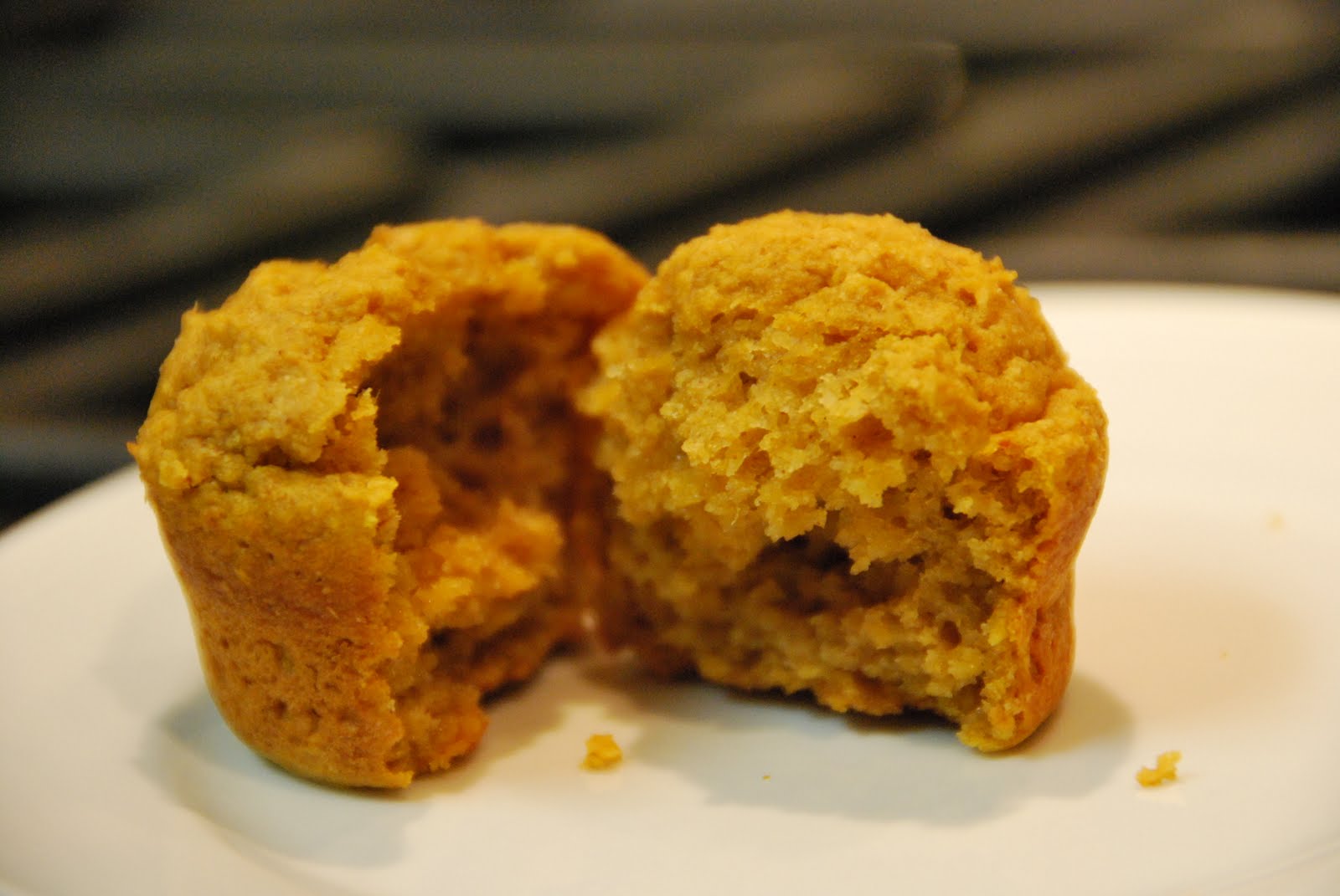 My only issue with a straight substitution of the 1 cup of apple sauce for 1 cup of pumpkin, though, was that I would likely end up throwing away half a can of pumpkin puree (yes, I know, I should be able to find another use for the rest of that pumpkin but the reality is I’m not always that organized!).  So I wondered what would happen if I just threw the whole thing in the batter…and voila!  The extra veggie puree just seems to make the muffins more moist, but didn’t weigh them down at all.  I love these muffins, and the munchkin LOVES these muffins – she has requested them three times since the original batch!  Unlike most heavy pumpkin baked goods, these are light and almost flaky, barely sweet, and have just enough cinnamon to highlight the pumpkin without being overpowering.  Even hubby, who is not much of a pumpkin fan, isn’t opposed to eating these – I’ll take that as the highest compliment of all 🙂